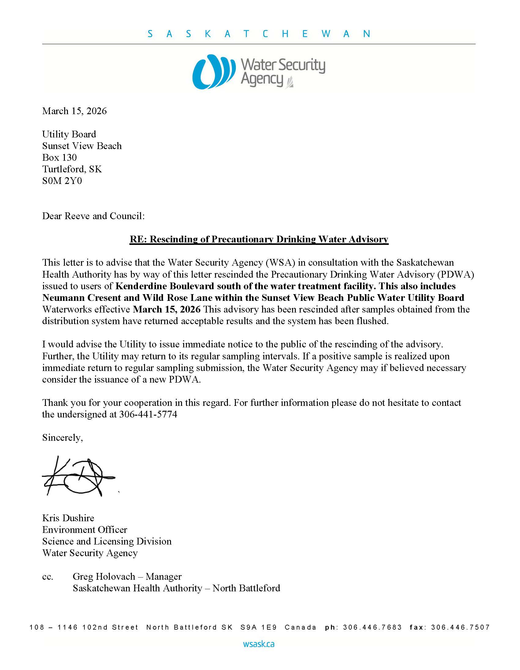 Sunset View Beach Precautionary Drinking Water Advisory Rescinded - March 15, 2026