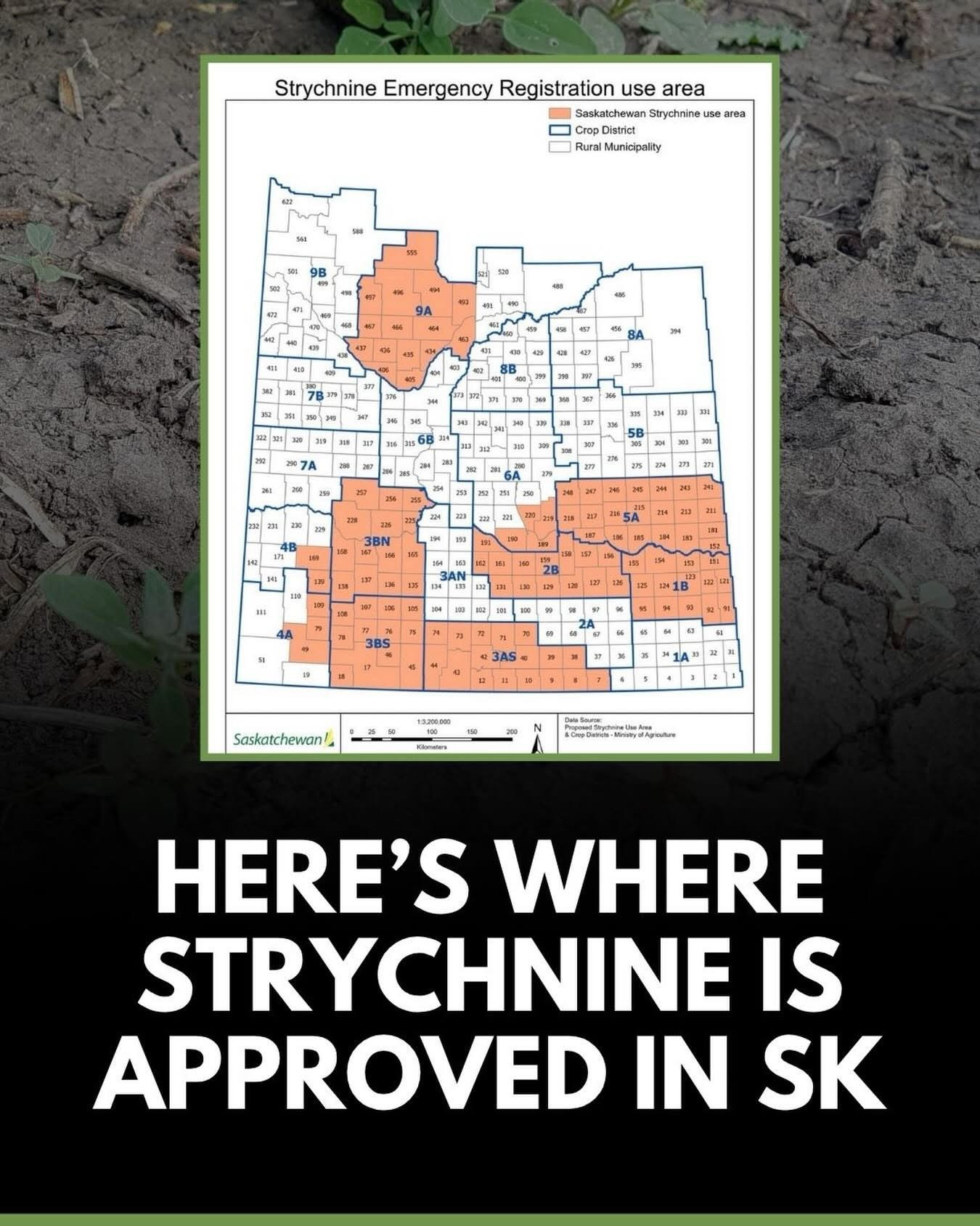 Although Saskatchewan has been approved for the temporary usage of strychnine until November 2027, only specific rural municipalities in Saskatchewan were approved. The RM of Mervin No. 499 was NOT one of the approved municipalities for strychnine use. Below is a map of the approved municipalities. If you have any questions, please contact your local MLA: